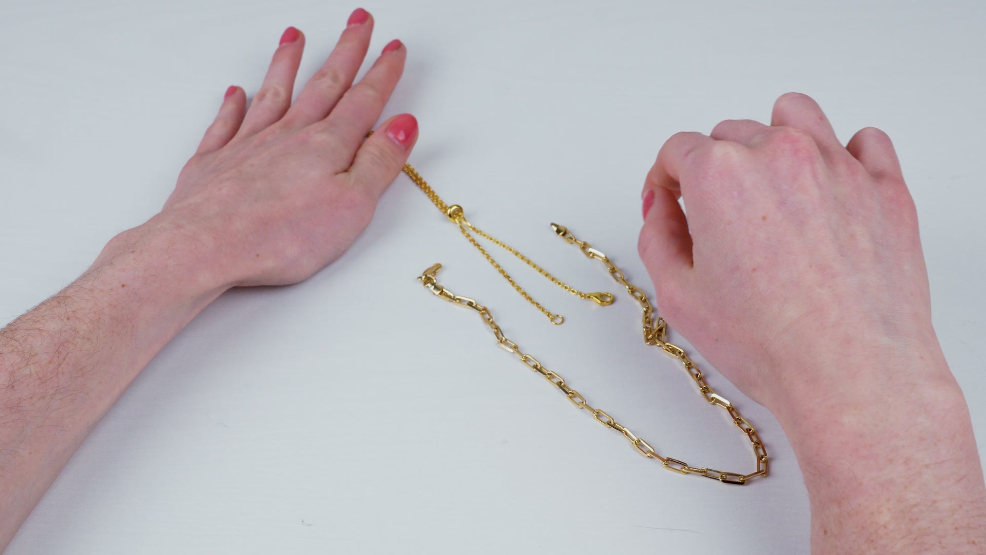 4. Adjust the length by holding your Claspable™ chain and moving the slider bead to the desired position.